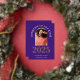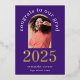 Invitación de Relieve metalizado dorado Púrpura Grad 2025 Arch Photo. Un estilo moderno para anunciar la noticia de tu graduación con 2025 en Relieve metalizado real en oro junto al resto del texto en blanco. Fácilmente personalizable con el nombre y el mensaje de tu graduado en la escuela secundaria y en la parte posterior, y reemplazar la foto de muestra por la tuya propia que está dentro de una forma de arco