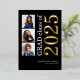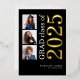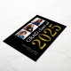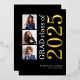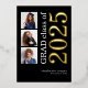 3 Fotos Graduación 2025 Real Relieve metalizado dorado. Un diseño moderno con tipografía elegante y tres fotos para anunciar la noticia de tu graduación con 2025 en Relieve metalizado real en oro sobre un fondo negro clásico. También puede seleccionar Relieve metalizado de oro plateado o rosa para el año. Fácilmente personalizable con el nombre de su graduado y la escuela secundaria y reemplazar las fotos de muestra por las suyas.