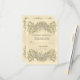 Un borde superior e inferior de rosas da un aspecto clásico a esta tarjeta de respuesta de boda de color crema. El texto personalizado se coloca entre las flores, mientras que una marca de agua de los estandartes florales se imprime verticalmente detrás del texto. La imagen se repite en el reverso para resaltar sus nombres y la fecha del evento. Disponible en colores alternativos con productos coincidentes.