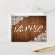 Tarjeta postal de respuesta para su celebración. Estilo rústico con fondo de tablones de madera y decoración de encaje blanco. Más artículos están disponibles en este estilo en nuestra tienda. Puede editar el diseño más a fondo, cambiar colores, fuentes y agregar texto adicional haciendo clic en el enlace "personalizar más".