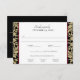 Tarjeta de respuesta de damasco dorado y negro simple y elegante con línea de acento borgoña. Tarjeta de RSVP con opciones de cena o edite según sea necesario para satisfacer sus necesidades.
