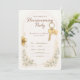 Diseño refinado de inauguración de casa con tonos beige suaves, vegetación de color verde salvia apagado y acentos de llave dorada dentro de un diseño arqueado. Líneas limpias y detalles suaves de acuarela enmarcan el espacio, ideal para organizar una reunión en un nuevo hogar con un ambiente cálido y elegante.