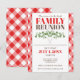 Reúne a tus seres queridos para una reunión familiar con esta invitación inspirada en el estilo rústico al aire libre, que presenta un fondo con estampado de gingham rojo y un encantador diseño de árbol genealógico. Perfecta para una barbacoa familiar, fiesta de verano o clásica barbacoa estilo picnic, este diseño establece el tono para una reunión cálida y memorable.