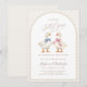 Anuncia tu alegre revelación de género con esta encantadora invitación temática coquette de 'Loco Ganso'. El diseño muestra dos adorables gansos acuarela, uno con una delicada cinta rosa y el otro con un encantador lazo azul, estableciendo un tono juguetón. '¡Un pequeño ganso loco está a punto de escaparse!' es la frase caprichosa perfecta para capturar la emoción de tu próximo bebé. Esta invitación es ideal para padres que aman un toque de elegancia juguetona y quieren compartir su momento especial de una manera memorable. Deja que la anticipación crezca mientras invitas a seres queridos a celebrar este importante hito.