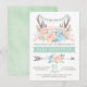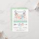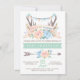 Invitaciones de revelación de género tribal para baby shower con cuernos florales vestidos con un banner y banderines con texto rústico y flecha. Puedes personalizar fácilmente esta invitación de revelación de género tribal simplemente agregando tus detalles. También puedes eliminar la capa de fondo del reverso para agregar el color de tu elección.