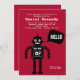 Este simpático robot dice "Hola". Es un impresionante destaque contra el fondo rojo berry con las rayas más pequeñas. Perfecto para la celebración de un niño.