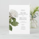 Una ilustración digital original de rosas blancas en el estilo de bocetos botánicos vintage se presenta en esta invitación.