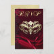 Invitación de RSVP con máscara de oro y joyas roja