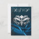 Nuestras invitaciones de RSVP con máscara de plata y joyas azules vienen con sobres blancos. Por favor, vea más estilos geniales en theinspirededge.com