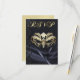 Invitación de RSVP con máscara dorada y joyas negr