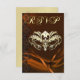 Invitación de RSVP con máscara dorada y naranja en