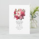 Invitación a la boda con flores rojas en Rubor y currant. Ideal para una boda de primavera. El código QR al revés se dirige al sitio de su boda, donde la gente puede aprender más y ver más.