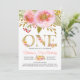 Invitación a la flor de primer cumpleaños Rústico Rubor Pink Gold.