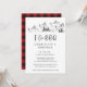 La invitación de Rustic Wilderness Buffalo I Do BBQ es ideal para una fiesta con tema de montaña. Nuestro evento inspirado en la montaña presenta una escena de montaña y bosque ilustrada a mano con un fondo de cuadros de búfalo inspirado en cabañas, perfecto para su fiesta de compromiso de I Do BBQ.