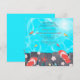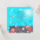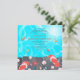 Una impresionante invitación con tema de verano que presenta aguas turquesas con peces coloridos debajo de un paseo marítimo. Un par de chanclas y una colección de conchas marinas y flores tropicales está al borde del agua. Perfecto para cualquier ocasión de playa.