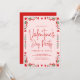 Marco de San Valentín rojo y verde sobre la invitación a la fiesta de personalizable rosa pálido. Corazón rojo y tipografía.