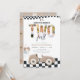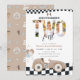 Invitación de cumpleaños número 2 de coche de carreras vintage, invitación de cumpleaños de coche de carreras beige para niño con foto "Two Fast Second"