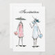 Una fotografía de una pintura original a pluma y acuarela del artista inglés Terry Donnelly "Damas camino al almuerzo", dos damas sofisticadas de compras/almuerzo/carreras de la serie Vintage