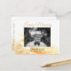 Tarjeta postal de invitación a un servicio funerario o conmemorativo con un hermoso fondo floral de gerbera dorada y una foto personalizada para el ser querido. El texto del modelo en la parte posterior hace que sea muy fácil personalizarlo.