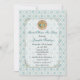 Moda invitación a la ducha de novia hecha en un oscuro acua vintage y blanco damasco floral. En la parte superior hay una zona de texto semitransparente enmarcada en blanco y de aspecto antiguo, decorada con gráficos de un macarrón de té. Personaliza todo el texto para que se adapte a tu evento de fiesta de té. Invitación encantadora que la novia apreciará.