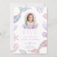Invitación de cumpleaños número 5 editable para bucear en cinco con sirena con imagen Invitación de cumpleaños número cinco de cola de sirena rosa púrpura Quinta 5 tema pastel brillante brillo Z8