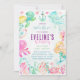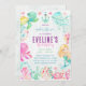 Invita a tus amigos a una fiesta de cumpleaños con tema bajo el mar con estas hermosas invitaciones de cumpleaños de acuarela que presentan a una sirena con animales marinos, incluyendo peces, tortuga marina, pulpo, caballito de mar y medusa.