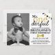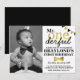 La invitación de Sr. Onederful negro y dorado con foto es la exhibición perfecta para preparar el escenario para el primer cumpleaños de su pequeño caballero.