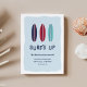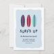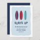 invitaciones de navegación con temática de Guay permiten a amigos y familiares conocer su nueva residencia en la playa! El diseño incluye un trío de tablas de surf en la marina, rojo y agua, con "surf's up!" debajo. Personalice su nueva dirección y nombre familiar.