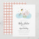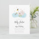 Carta de invitación a la ducha de bebé, moderna y agradable, con ilustracion de cisnes de madres y bebés. Diseño neutro desde el punto de vista del género.