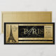 Invitación de cumpleaños de París con la hermosa Torre Eiffel y letra dorada en un fondo estilo tarjeta de embarque. Puedes agregar texto en el área de la Torre Eiffel y cambiar el color del fondo y del texto. Esta elegante invitación de cumpleaños de París en negro y dorado se personaliza fácilmente para tu evento simplemente agregando tus detalles. Este es un diseño impreso sin lámina real.