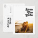 Esta invitación de tarjeta postal para guardar la fecha con letra retro moderna y foto es perfecta para tu boda de verano bohemio vintage sencilla y única. La letra es un estilo negro elegante, fuente boho de los 70 chic que da a este diseño vibraciones minimalistas clásicas y groovy hippies. Puedes agregar tus propios gráficos o imágenes si deseas personalizarlo. Por favor, no dudes en hacernos saber si tienes alguna pregunta sobre el diseño del producto; estamos encantados de ayudarte.