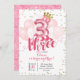 Invitación de tercer cumpleaños a un globo de la Corona Rosa