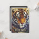 Sorprende a amigos y familiares con una invitación de tigre moderna y creativa. La parte delantera de la invitación presenta un diseño de tigre con la frase "Estás Invitado". Los detalles sobre el evento están en la parte posterior con un código QR. El código QR se puede utilizar para tu RSVP, sitio web (entre otros). Colores terrosos. Diseño de tigre personalizado. Utiliza la plantilla para personalizar.