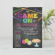 Invitación de tiza para fiesta de pizza en Game On