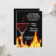 Un sangriento vaso de martini, puesto en un fondo negro, con llamas destaca esta invitación a la fiesta al estilo Gótico. El texto del personalizable blanco está listo para personalizar para tu fiesta de Halloween.