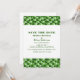 Con un patrón de triángulo verde de moda y multicolor, esta invitación de triángulos geométricos para guardar la fecha es una excelente opción para una boda moderna. Esta invitación simple es fácil de personalizar con los detalles de la boda. Para más opciones de personalización, haga clic en el botón Personalizar.