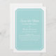 Anuncio de fecha de boda moderno y chic Simply Elegant con un diseño elegante de emblema de entrada turquesa. Este diseño clásico y elegante es fácil de personalizar con los detalles de su boda. Para más opciones de personalización, haga clic en Personalizar.