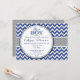 Celebra la próxima llegada de un niño dulce con esta moderna invitación a la ducha de bebé chevron azul. Paquetes de chevron azul marino y polka gris - Artículos coincidentes disponibles en Impresoras portátiles
