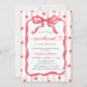 ¡Celebra a la futura mamá con una invitación de baby shower inspirada en el Día de San Valentín! Esta Invitación de Pequeño Amor incluye un lazo de acuarela, rayas rosadas y corazones rojos.