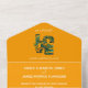 Esta invitación a la boda temática de Susan con los ojos marrones es tan práctica como hermosa. No hay mejor manera de celebrar a los que amamos que con estas hermosas palabras temáticas florales orientadas al AMOR enmascaradas de Susan de ojos marrones que fotografié y luego pasé por una aplicación. Elegante y eficiente con un fondo amarillo dorado, AMOR - ¡un profundo sentimiento de afecto!