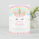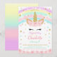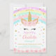 Invitación de Unicornio con Flores Rosas Arcoíris