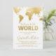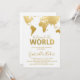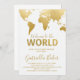 Ayudemos a celebrar a la madre a estar con esta invitación a la ducha de bebé de viaje que incluye un mapa mundial de Relieves metalizados falsos de oro.