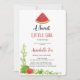 INVITACIÓN DE WATERMELON BABYSHOWER Esta tierna invitación a la ducha de chica "una niña dulce está en camino" presenta un fondo blanco con sandías y hojas verdes en acuarela. En el reverso, el fondo es blanco, con sandía y estampado rosa.