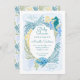 Esta moderna invitación a la ducha para bebés cuenta con olas giratorias que se abren alrededor de un caballito de mar y un bebé. Original dibujado a mano