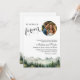 Una elegante Invitación a la Boda con montañas de acuarela y pinos que puede personalizar con sus detalles.