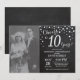 Invitación de décimo aniversario de boda con foto personalizada. Invitación de pizarra negra y plateada. Décimo aniversario de boda. Fondo de diamante de pizarra negra y plateada con brillo. Confeti plateado. Cumpleaños adulto. Fiesta de cumpleaños para hombre o mujer. Para una mayor personalización, haga clic en el botón "Personalizar" y use nuestra herramienta de diseño para modificar esta plantilla.