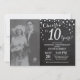 Décimo aniversario de boda con foto personalizada. Invitación de pizarra negra y plateada. Décimo aniversario de boda. Fondo de diamante de pizarra negra y plateada con brillo. Confeti plateado. Cumpleaños de adulto. Cumpleaños de mujer o hombre. Fiesta de cumpleaños de hombre. Para una mayor personalización, haga clic en el botón "Personalizar" y use nuestra herramienta de diseño para modificar esta plantilla.