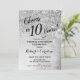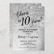 Invitación del décimo aniversario de bodas. Diseño elegante con fuente de letra script negra y plata con brillo falso. ¡Salud por 10 años! Por favor, envíeme un mensaje si necesita un año personalizado.