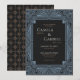 El Art Nouveau es un estilo de arte que floreció entre 1890 y 1910 en toda Europa y Estados Unidos. Estas elegantes invitaciones de bodas vintage presentan un diseño ornamental en azul verde azulado polvoriento con un fondo negro con un patrón de textura escondido en el medio. La parte trasera tiene un diseño cuadrado khaki contrastante sobre negro.