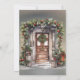 Espero que les guste este fondo de color verde y marrón con una corona de Navidades, bayas rojas, agujas verdes de pino, una puerta de madera marrón y una cadena de luces. En esta suite de colecciones hay disponibles las invitaciones para la boda y los suministros para la fiesta de boda.